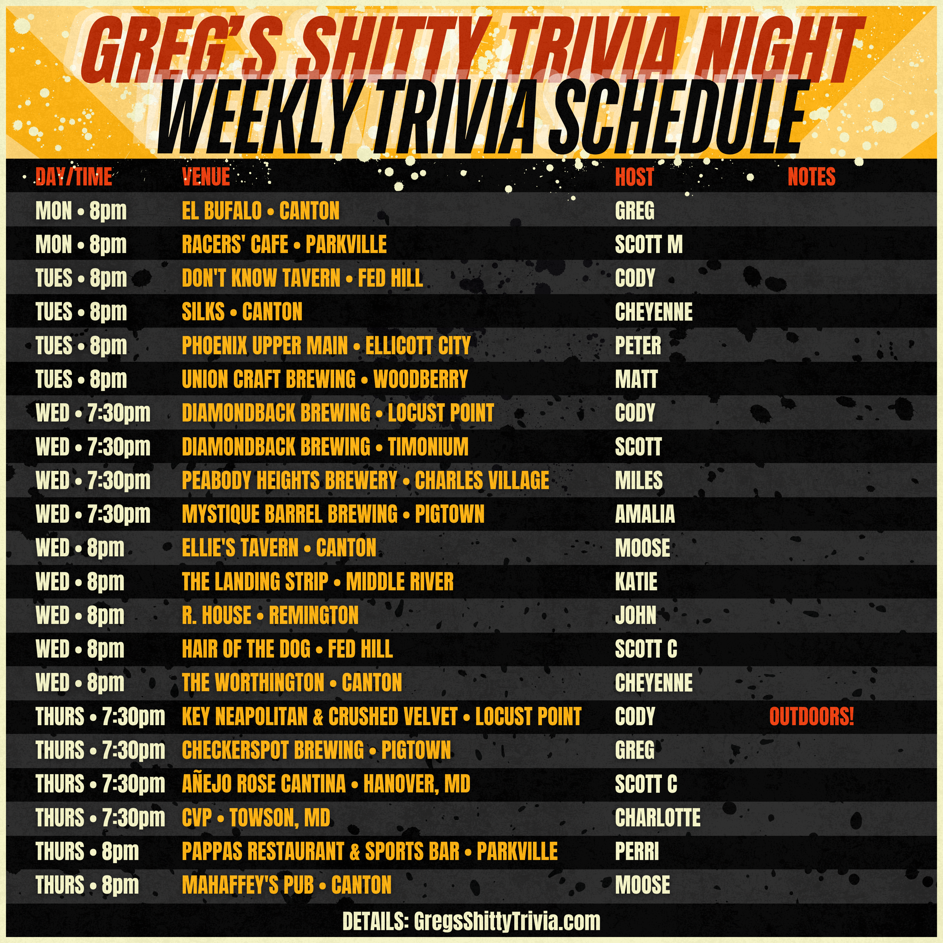 An "encore" event is a repeat event. Once a set of questions has been premiered (labeled as "ALL NEW QUESTIONS"), each event after is labeled as an "encore" event. Same questions, same jokes, same shitty trivia. All shows are labeled with a season and year (ex: SUMMER 2019). Check our the list of "Past Events" (below) if you are unsure of whether you're buying tickets to a show you've attended in the past.